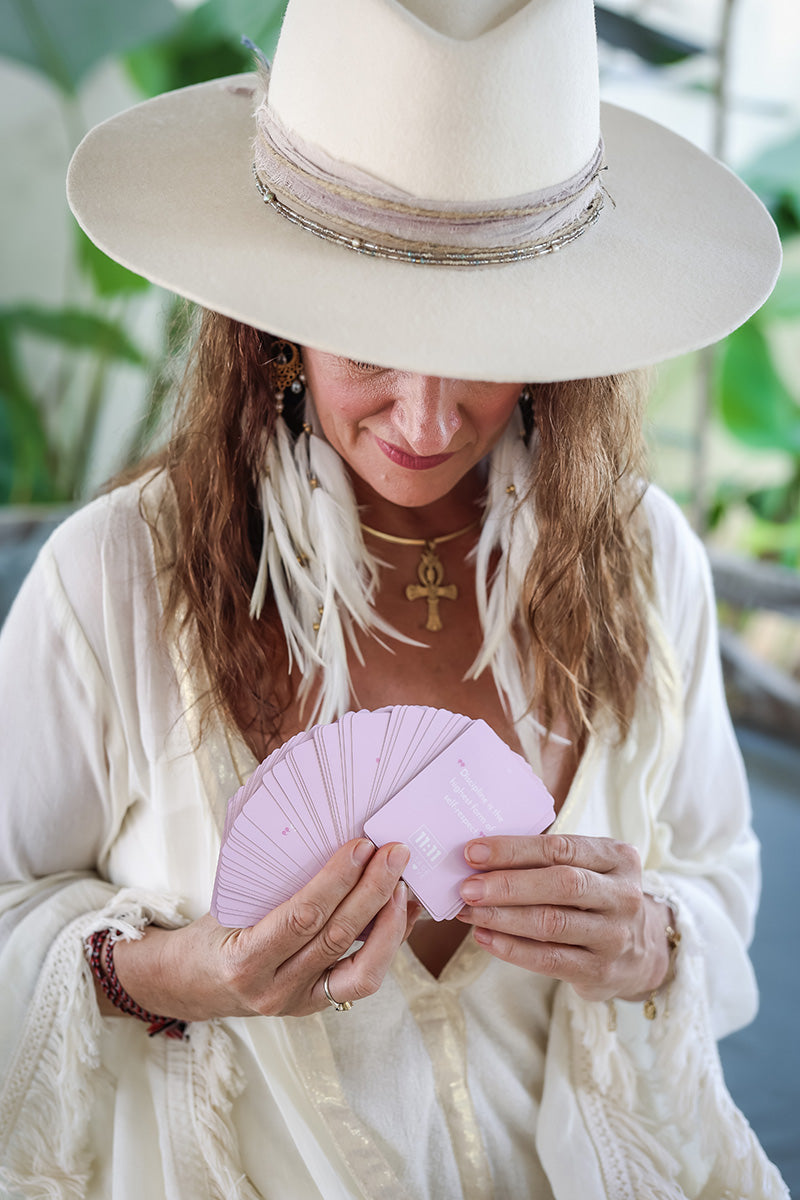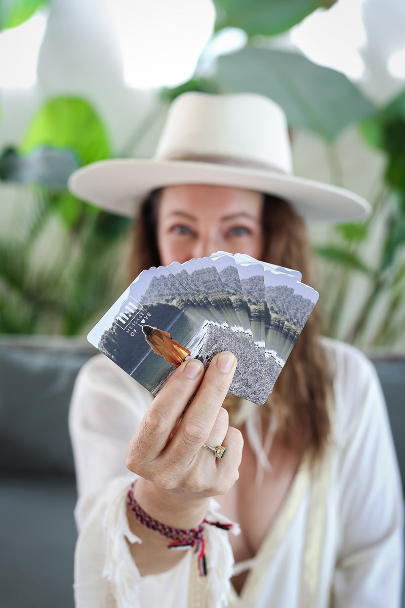 A sacred set of 44 pocket-sized cards, each carrying a whisper from the divine. This beautifully crafted deck of heart-centered guidance is designed to inspire, comfort, and uplift you on your journey. A perfect travel companion.